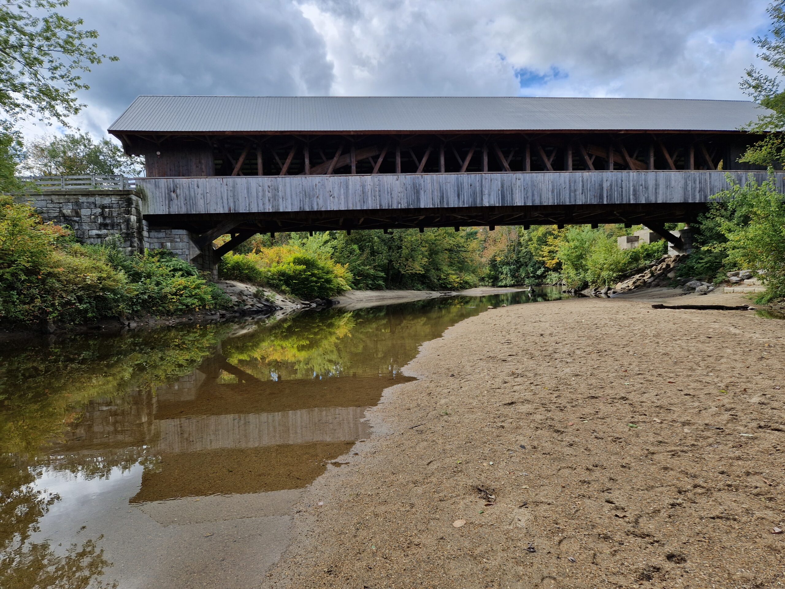 Via Dorchester rijden we richting Plymouth. Wat heel leuk is in deze periode zijn de versieringen die te maken hebben met Halloween. Pompoenen, poppen skeletten etc. Ook hier zien we steeds meer mooie herfstkleuren. Toevallig zien we op de kaart dat er vlak voor Plymouth een covered bridge te vinden is. We moeten een klein eindje omrijden, maar dat vinden we geen probleem en bovendien is de Smith Covered bridge erg mooi.