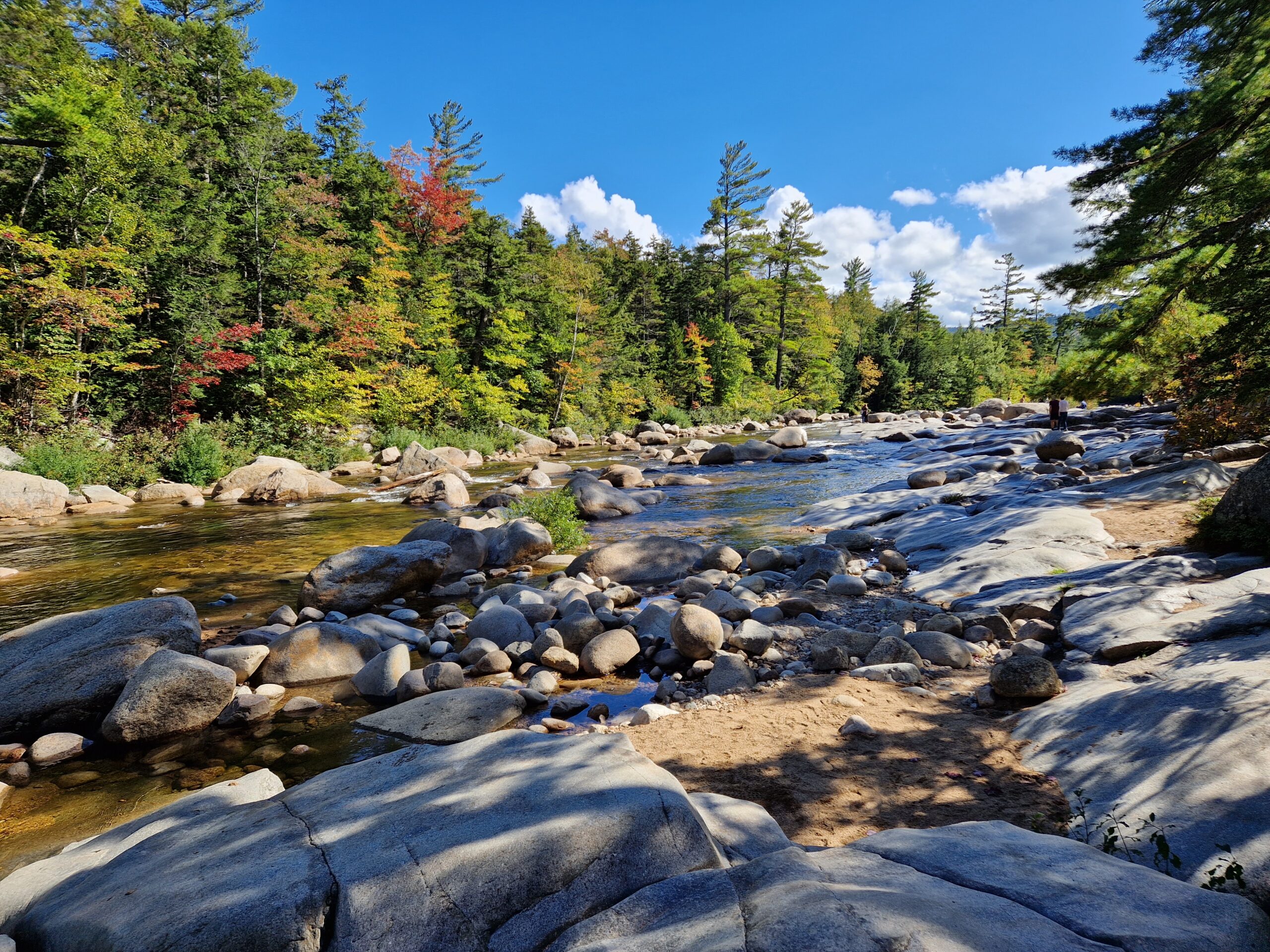 Om een uur of een zijn we in Conway en beginnen we aan de Kancamegus highway. In het begin is eigenlijk alles nog groen, we stoppen even om wat foto’s te maken van de rivier die naast de weg stroomt. Na 6 mijl stoppen we bij de meest gefotografeerde covered bridge van New Hampshire. En deze bridge, de Albany covered bridge is inderdaad erg mooi. Het is alleen af en toe wachten op de zon die steeds vaker achter de wolken verdwijnt. Als we de brug van alle kanten hebben gefotografeerd gaan we verder. Volgende stop: de Lower Falls, we lopen even rond, maken een paar foto’s en gaan weer verder.