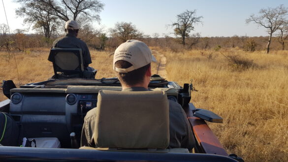 Daarom mogen we ’s avonds onder geen beding alleen naar de tent lopen. We installeren ons en gaan even lekker relaxen op de porch van onze tent. Julian en ik zitten echt aan de rand van het kamp en we turen in de struiken maar zien niks.