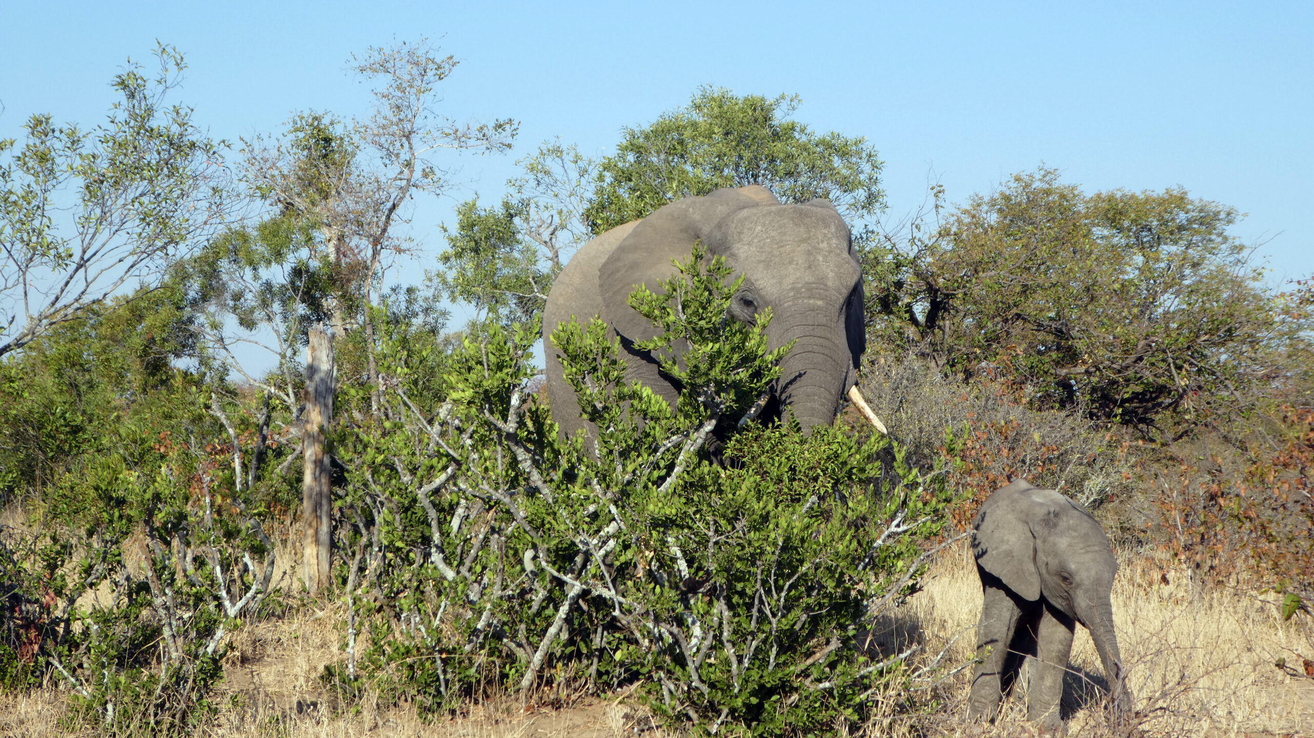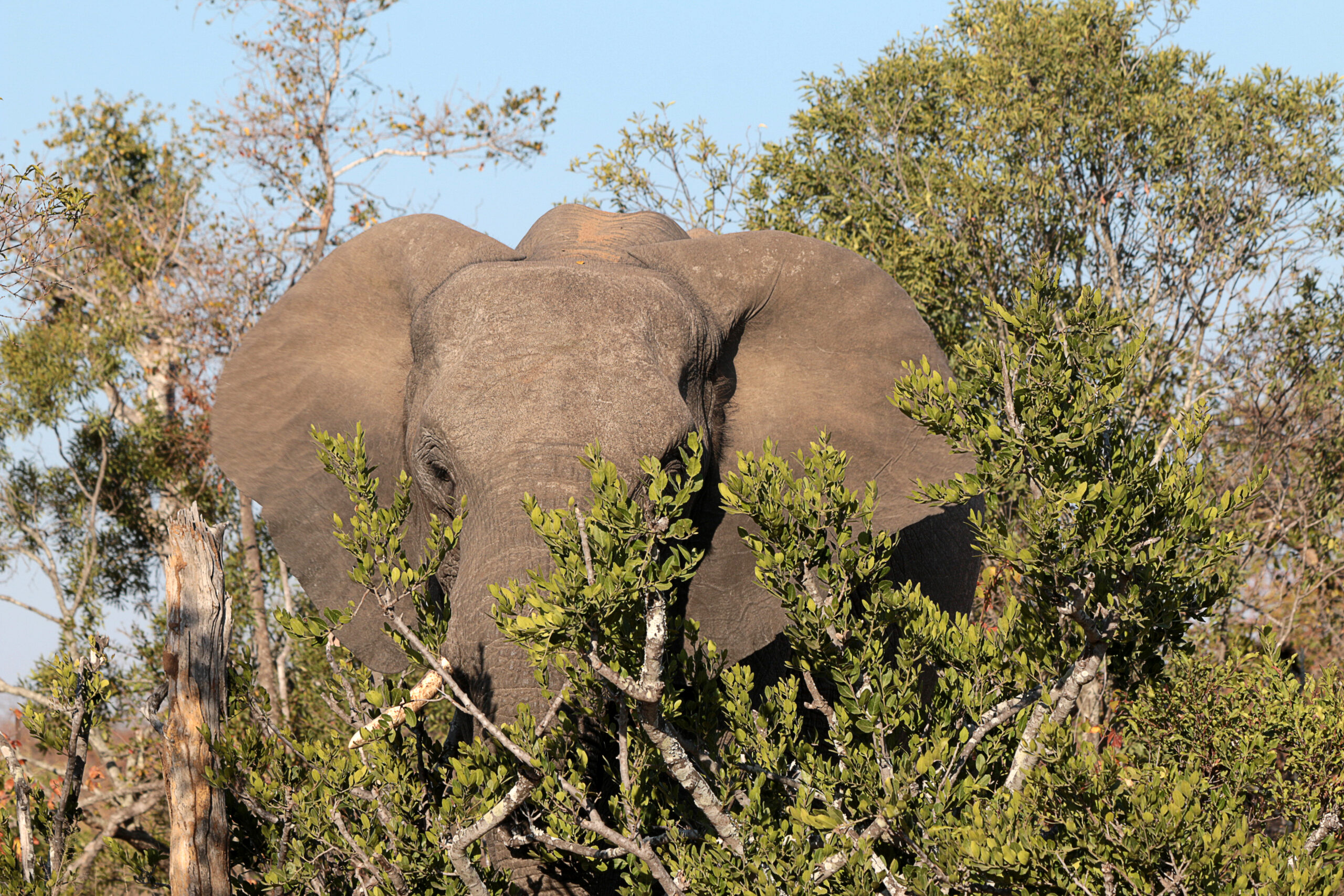 Vanaf de gate is het 13 km rijden totdat we rechtsaf slaan en de borden naar Shindzela kunnen volgen. Eigenlijk is dit de eerste gamedrive van de vakantie. We zien niet heel veel dieren maar wel de eerste olifant.