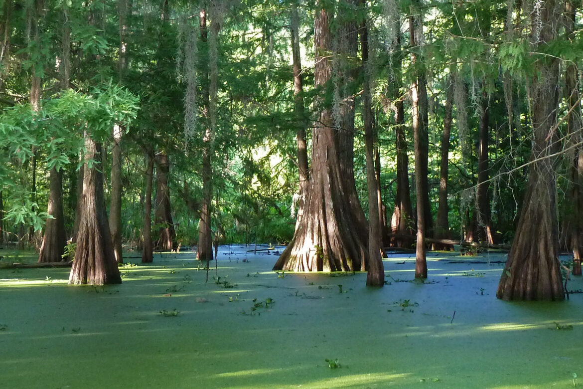 Aan beide kanten heb je af en toe een mooi uitzicht over deze swamps.