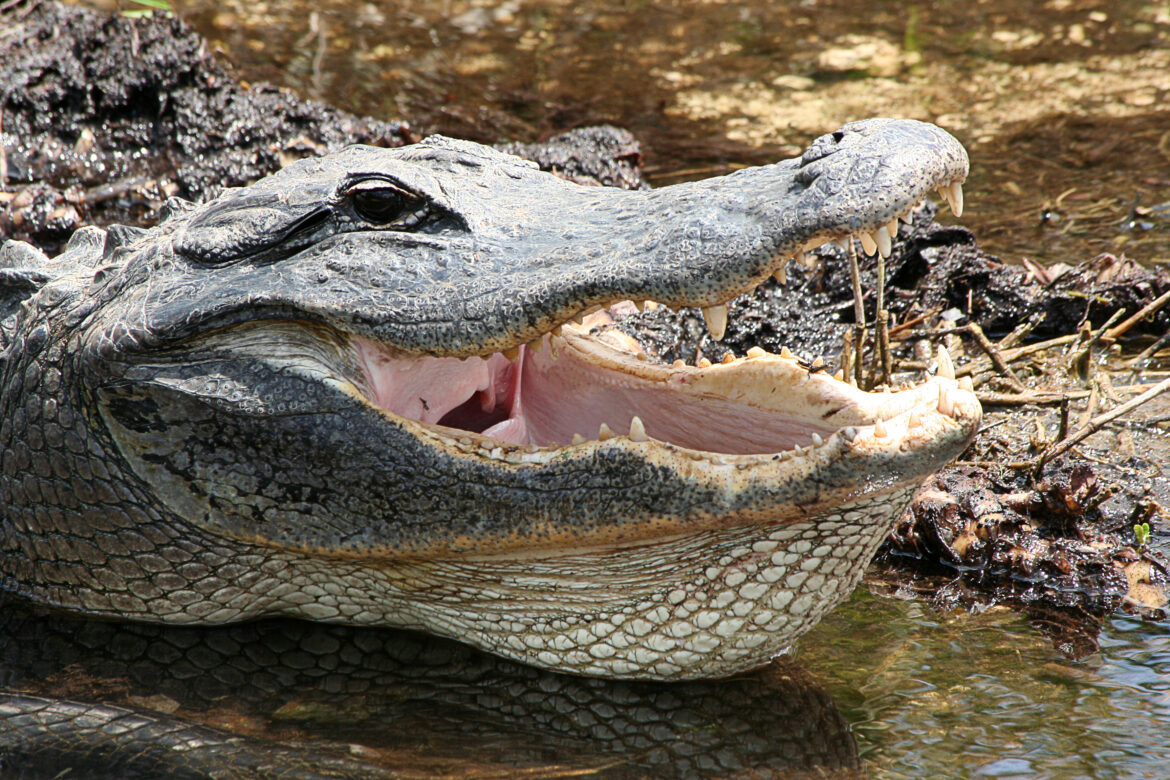 De allereerste alligator is dan natuurlijk het mooiste. Als we verder lopen zien we ene na de andere alligator, veel schildpadden en mooie vogels waaronder natuurlijk de Anhingha. Eén van de alligators doet net z’n bek wijd open wat een leuke foto van zijn gebit oplevert.