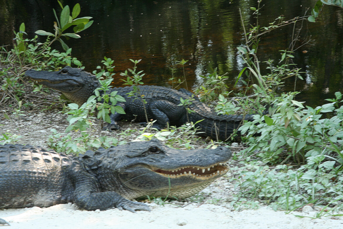 Vervolgens rijden we de loop road, een gedeeltelijk onverharde weg die zeer goed te berijden is. Hiervoor hebben we eigenlijk de 4WD gehuurd maar dat is hier absoluut niet nodig. Hier zien we werkelijk tientallen alligators in alle soorten en maten. Diverse keren stoppen we om aan de rand van zo’n poel naar de alligators te kijken. Ik weet eigenlijk niet of we nou gevaarlijk bezig waren, want regelmatig komt zo’n beest aangezwommen om op 2 a 3 meter te blijven liggen en ons vervolgens in de gaten houdt. Zou zo’n beest uit het water kunnen schieten om je aan te vallen? Je weet het nooit natuurlijk.