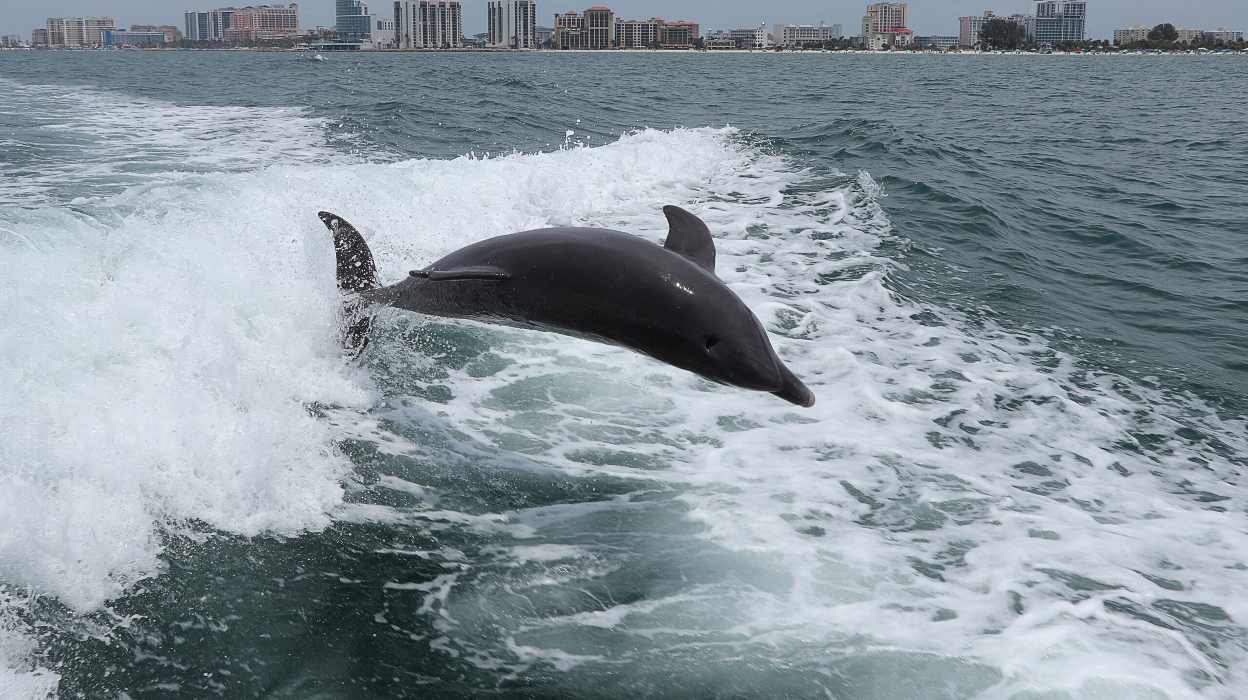 Even later wordt iedereen aan boord naar de achterkant gedirigeerd en gaat het gas erop. En ja hoor, meerdere dolfijnen zwemmen achter ons aan, maken sprongen en dat gaat echt een hele tijd door, supergaaf. We hebben deze tour ook in 2014 gedaan en kan me niet herinneren dat het toen ook zo spectaculair was.