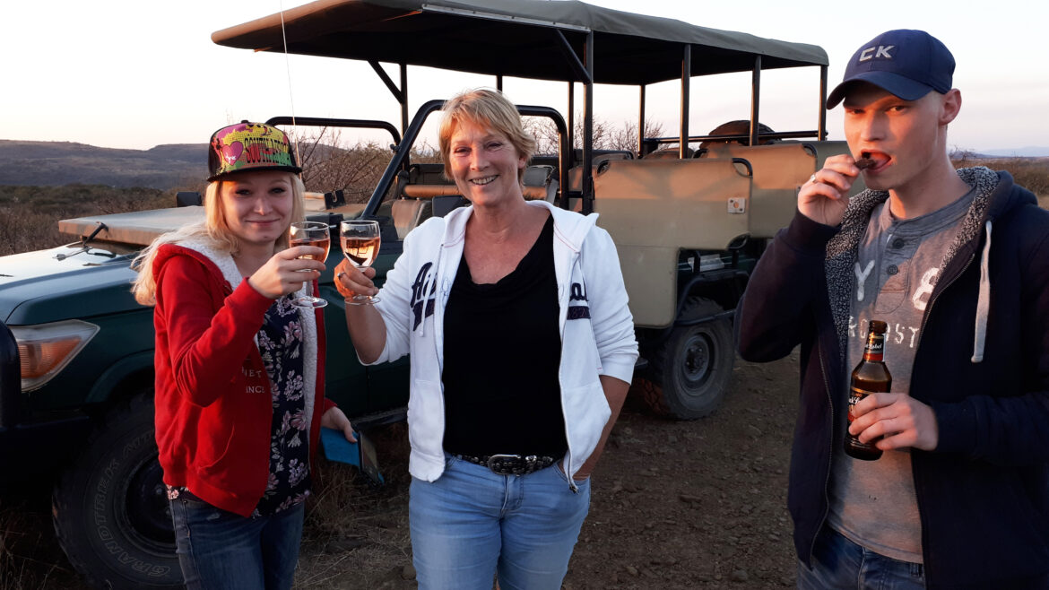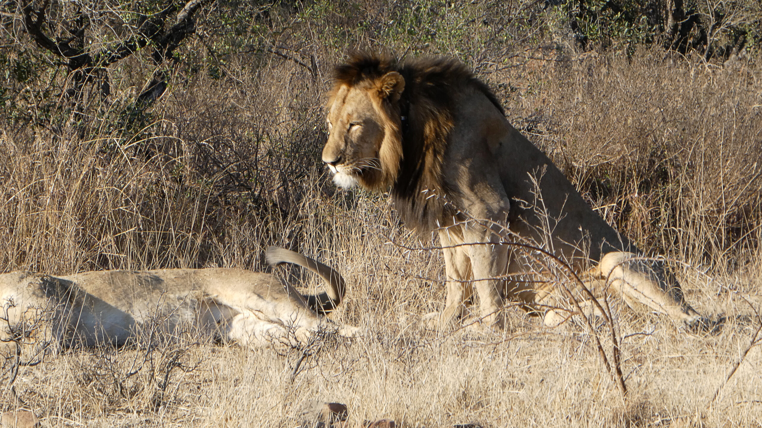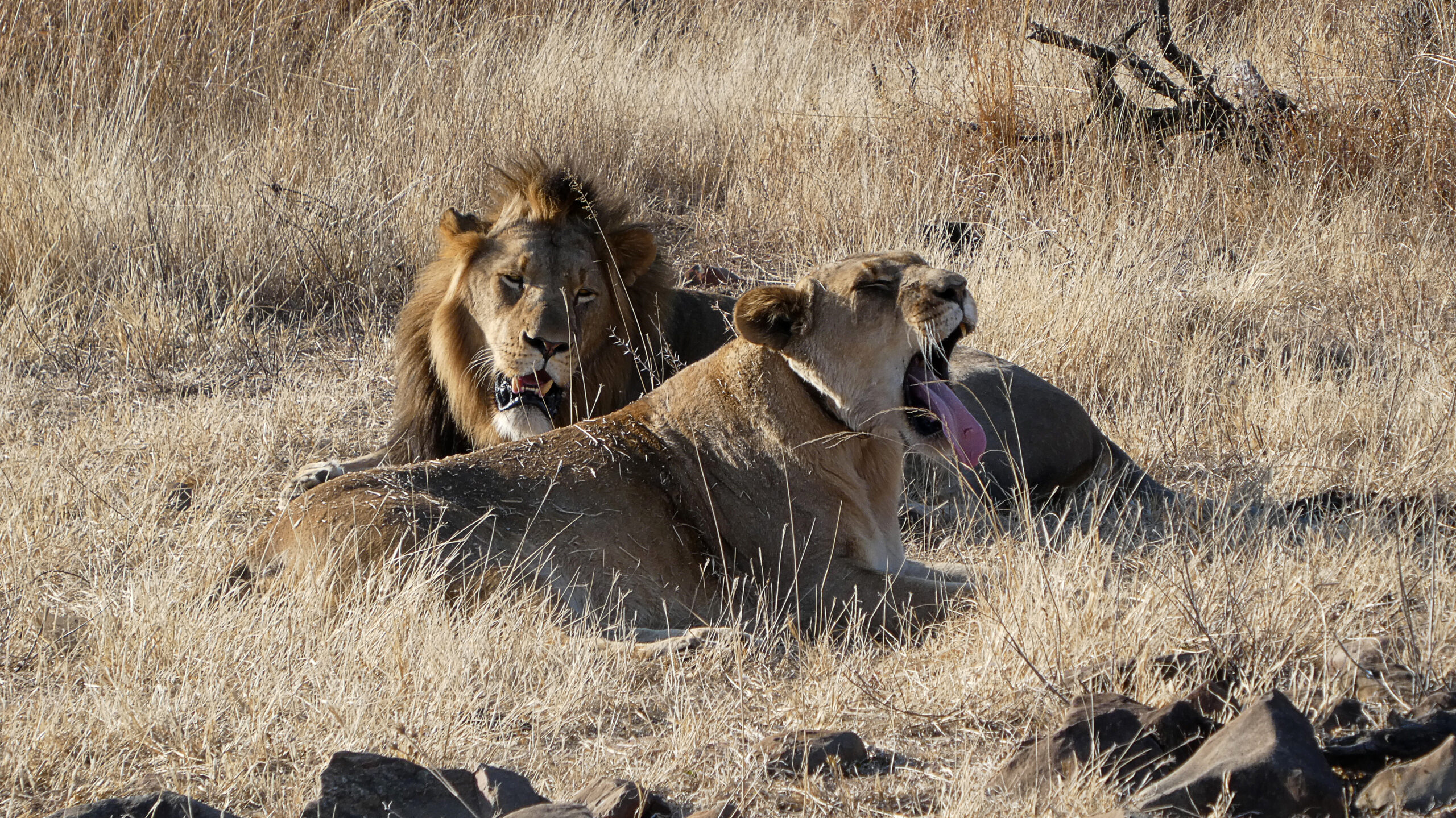 Om halfvier vertrekken we voor onze eerste gamedrive. Een dikke trui mee want als de zon onder gaat koelt het heel snel af. We zien olifanten, twee parende leeuwen, gnoes, zebra’s, impala’s etc. Deze reserve is 10000 hectare en de dierdichtheid zou groot moeten zijn. Maar dat valt nogal mee of tegen want zoveel dieren zien we nou ook weer niet.