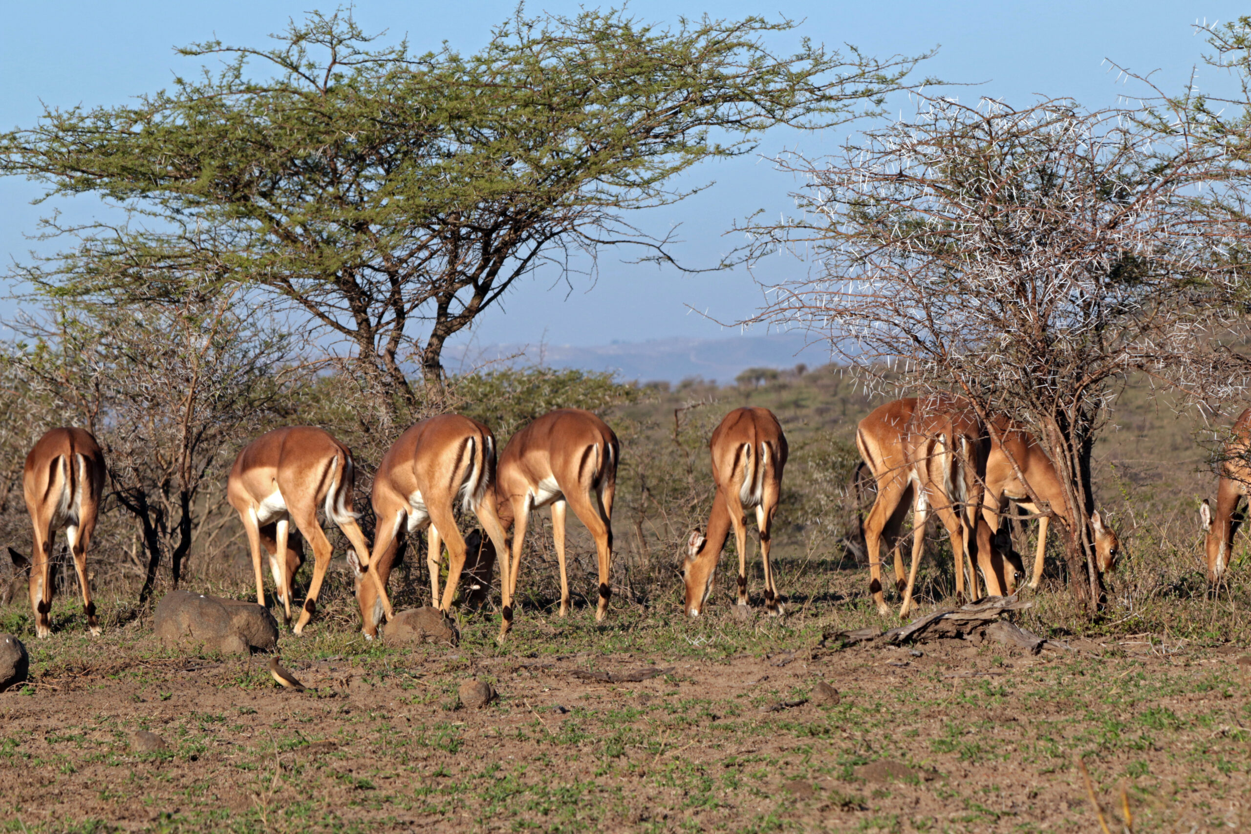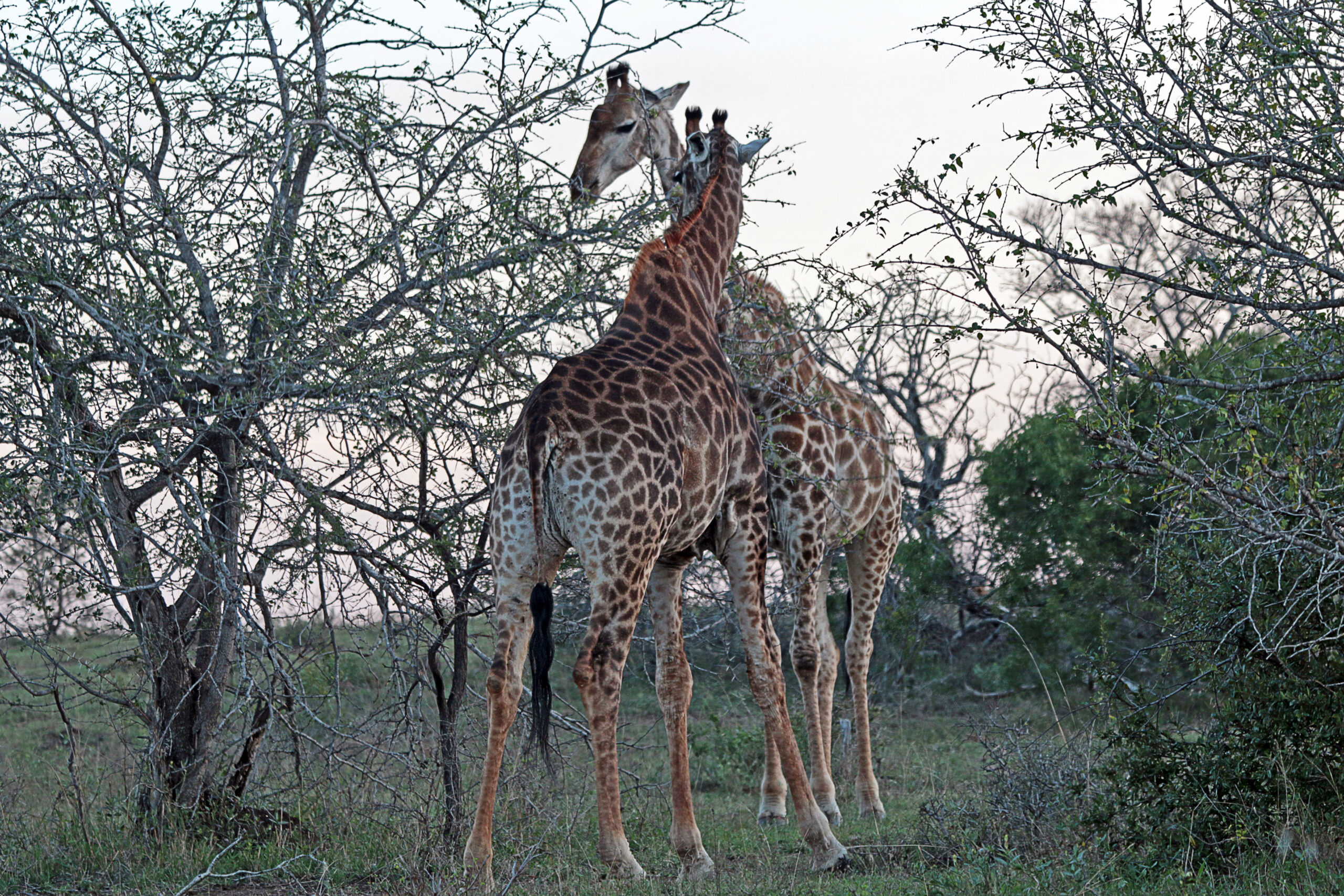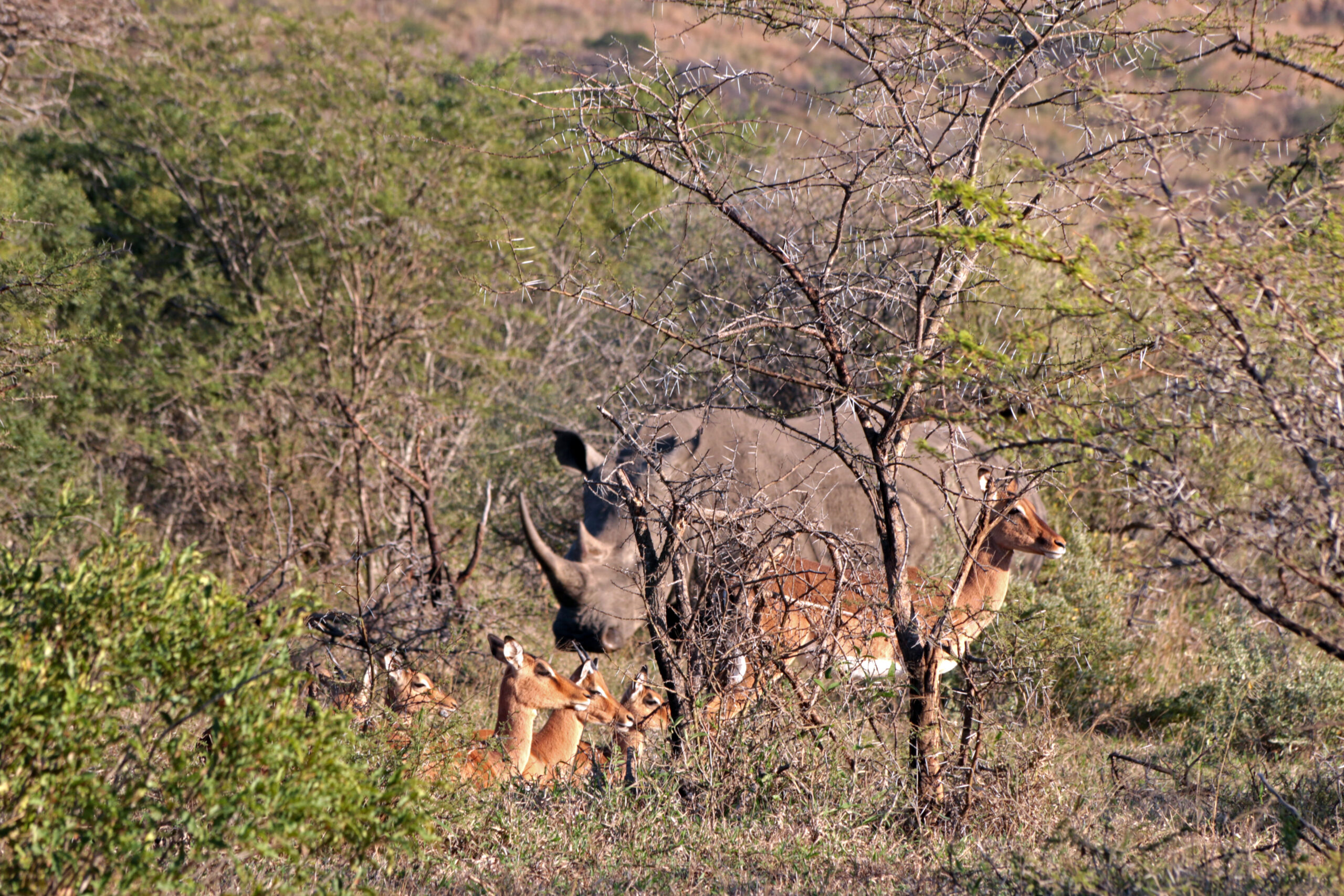 Om 3 uur gaan we op weg om hopelijk veel roofdieren te spotten. Nou die zien we helaas niet maar wel heel veel neushoorns, giraffen, zebra’s, een prachtige roofvogel (een Bateleur) en een kudde olifanten. Naast natuurlijk de nodige impala’, nyala’s etc. Ook nog een prachtige zonsondergang dus deze safari is erg geslaagd.