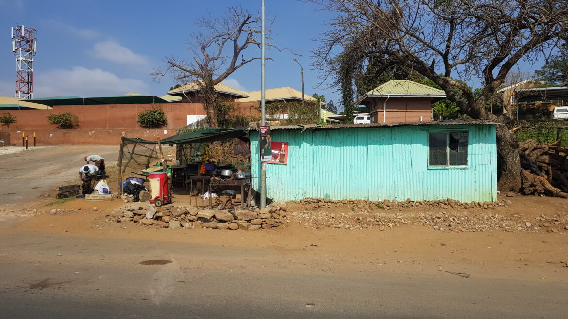 Hierna wordt het vlak en is het meteen duidelijk dat we hier in Kwazula Natal in een heel ander Afrika zijn dan in het gedeelte van zeg maar Johannesburg tot Kruger. Armoe troef hier en een hoop rotzooi langs de weg. In de buurt van Kosi Bay, slaan we af naar een onverharde weg en na een paar km. zijn we aangekomen bij de ophaalplek. Als het goed is worden we hier om 13.00 uur opgehaald door iemand van Rocktail Beach Camp.