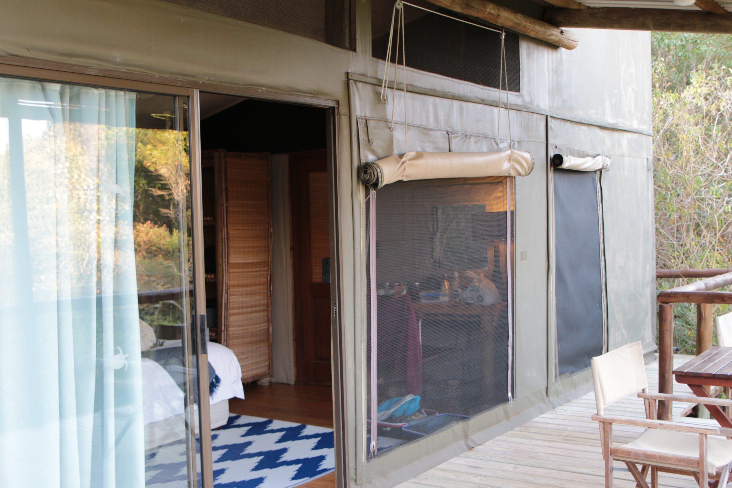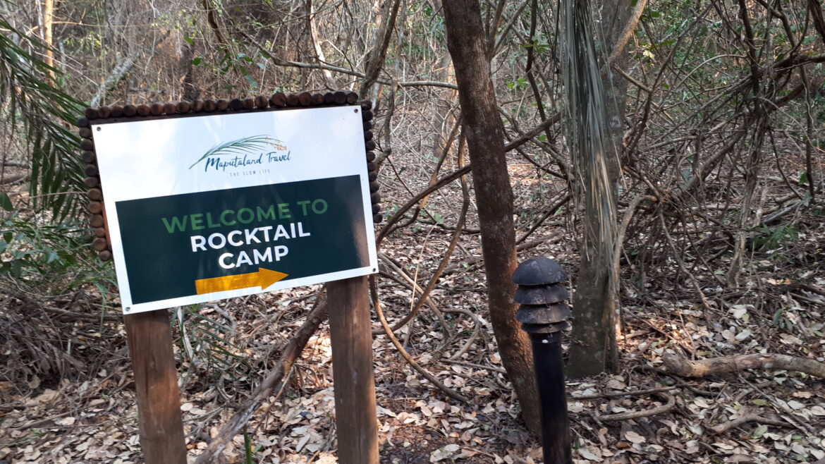 We laden de koffers in de safari wagen en zijn al bijna op weg als er op de valreep nog een Engels gezin mee gaat. De rit duurt 45 minuten en is niet interessant. In Rocktail camp worden we verwelkomd door een jonge dame en krijgen we een lekker drankje aangeboden. Er wordt ons verteld wat we allemaal kunnen doen. Dat wisten we natuurlijk al maar we doen net of we dat voor het eerst horen. Vervolgens gaan we lunchen. Ook hier wordt d.m.v. tromgeroffel aangegeven dat het lunchtijd is.